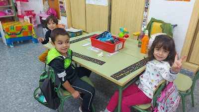 Nada más entrar en clase, lavarse las manitas y sentarse comenzó a hacer su corona....jejeje....estaba deseando de la ilusión de su día.......
